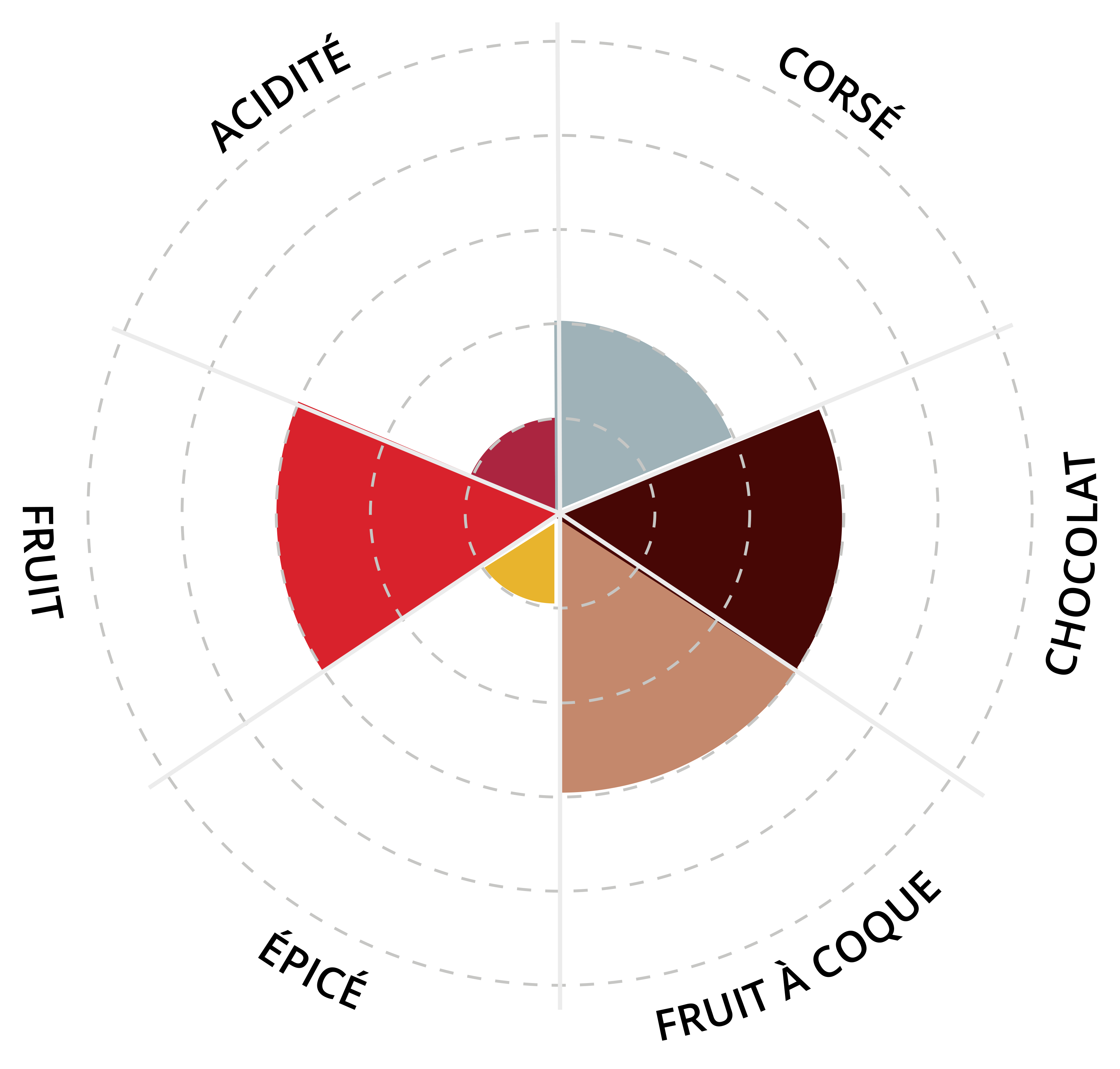 À la dégustation, c'est un café équilibré avec des notes d'oranges, de chocolat noir et d'amande.
